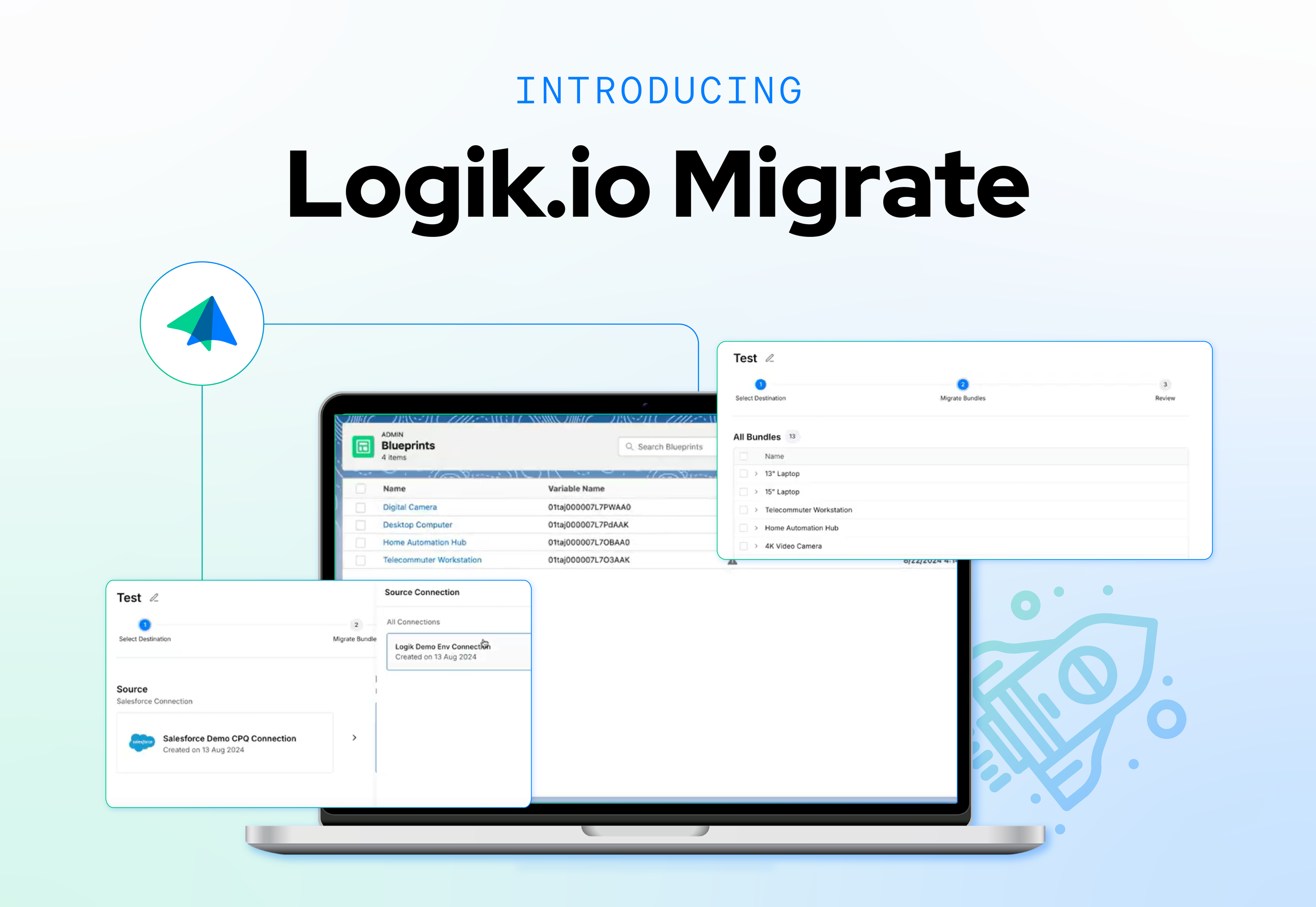 Images were crafted to showcase the launch of Logik Migrate. Logik Migrate is a tool that users can automate the conversion of products, bundles, rules, quotes, quote line data, pricing data, subscriptions and asset data between other platforms and Logik.io.